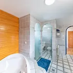 W prywatnej łazience znajdują się takie udogodnienia jak wanna i prysznic.
